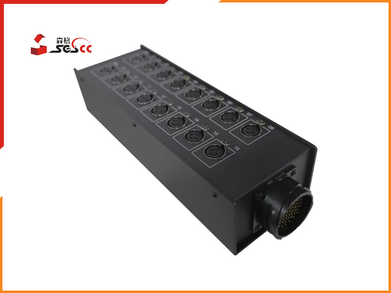 外壳为高强度耐疲劳优质钢、黑色并钝化,上面板装配3芯卡侬公、母插座,端面装配多芯公、母插座。