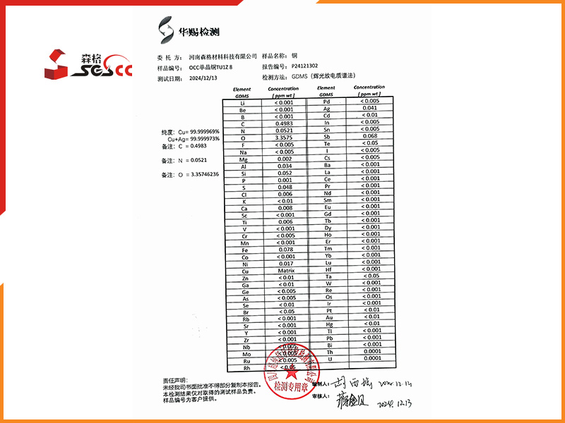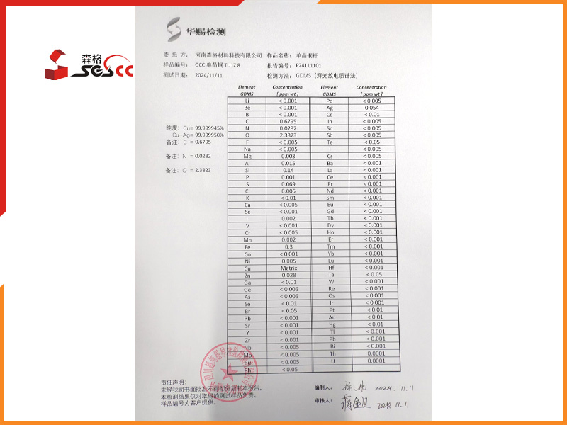 采用高纯度(5N-7N)电解铜,真空熔炼+气氛保护热型连铸OCC单晶杆坯,内部无晶界存在;具有纯度高、电阻低、组织致密、延展性好的性能特点;OCC单晶铜杆线系列产品,性能达到国家标准《信号传输用单晶圆铜线及其线坯GB/T26044-2010》的各项要求。