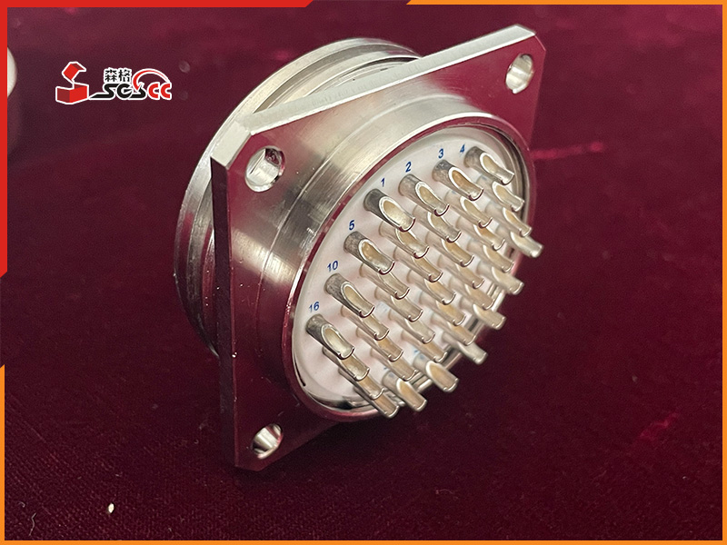 插针为高导电单晶铜合金、表面镀银,绝缘体为耐高温高弹工程塑料,壳体为高强度耐疲劳合金镀铬、并钝化。