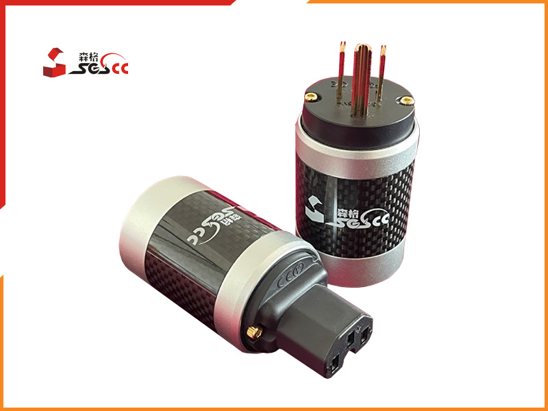 插针采用高纯高导无氧铜、簧片高弹高导铜合金,表面镀厚膜真金,防腐耐蚀、抗应力松弛;绝缘体、尾夹为超韧、耐高温工程塑料;尾夹尺寸根据线缆规格专属配置;壳体为碳纤管身+高强度耐疲劳铝合金。