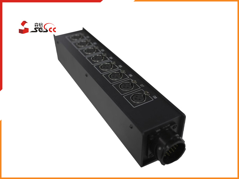 外壳为高强度耐疲劳优质钢、黑色并钝化,上面板装配3芯卡侬公、母插座,端面装配多芯公、母插座。