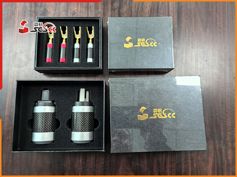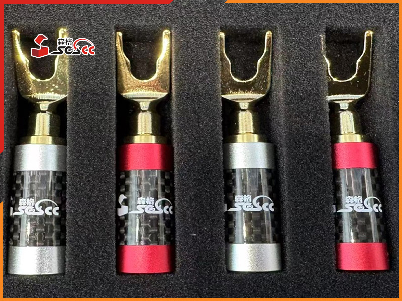 插片采用高纯高导无氧铜,表面镀厚膜真金,防腐耐蚀、抗应力松弛;尾管尺寸与线缆外径配合严实;壳体为碳纤管身+高强度耐疲劳铝合金;铝合金氧化着色区分正负,红-正极、银色-负极。