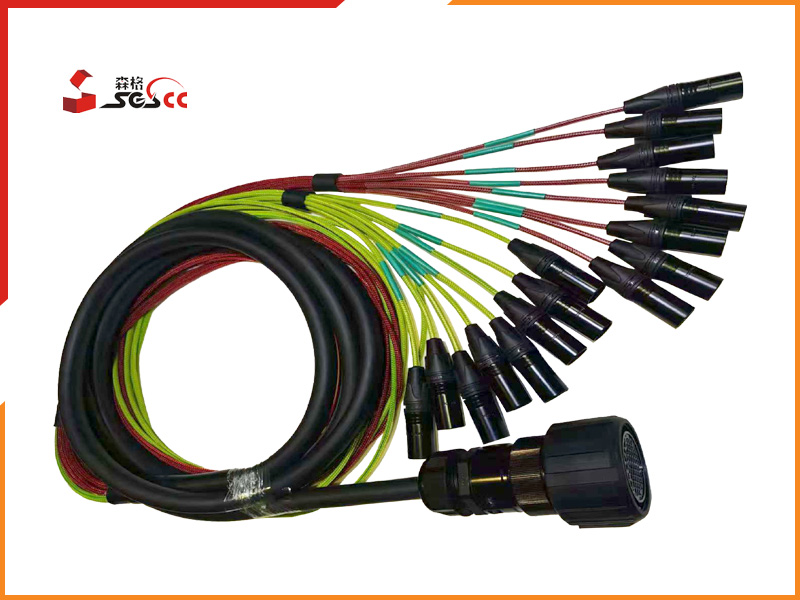 电缆为流动连接用AMEPVP₁V 型单晶铜多信道音频电缆,其音频单元线为AMEP₁V 2×0.18高保真专业话筒线;电缆两端插头:一端为多芯插头,另一端为多芯插头、或3芯卡侬插头8/12只。