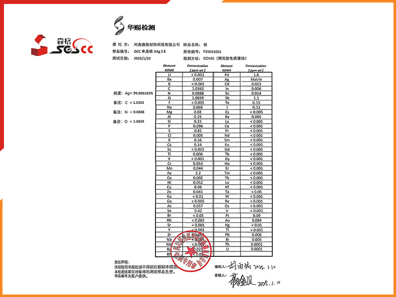 4135-2016银锭》做原料,真空熔炼+气氛保护热型连铸OCC单晶银杆;产品具有高纯度、超低氧含量、高导电、无磁性等性能特点。